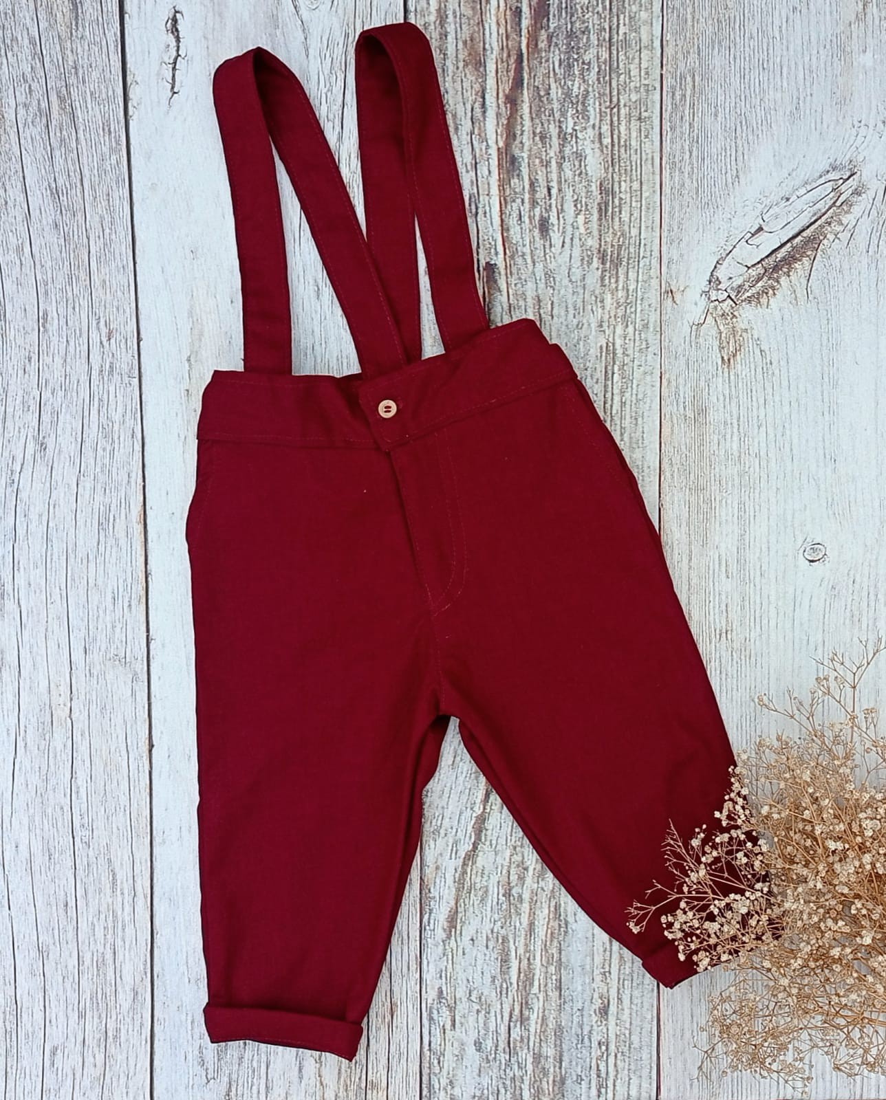 O tom marsala da calça e suspensório, são peças coringas que se adequam a qualquer evento.