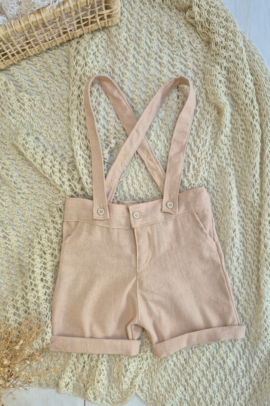 A bermuda e os acessórios são confeccionados em linho, com elástico no acabamento da cintura e regulagem, o que ajuda no ajuste ao corpo, os bolsos frontais são reais.